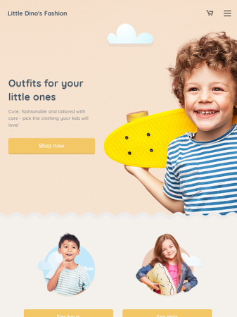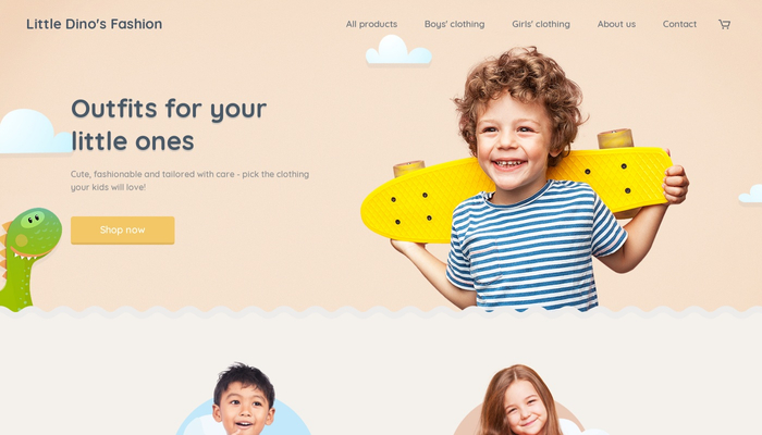 Sell the wonderful children's clothing you sew and showcase your work online! This is a perfect template for your online store with clothing or accessories. Popular products, cute design and an easy check-out process will help your online store stand out from the rest.