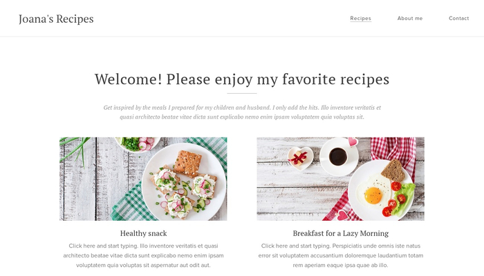 Choose this template for your blog about traveling, cooking, fashion or healthy lifestyle. Your travel pictures, culinary masterpieces and eye-catching outfit will grab your visitor's attention due to this template's well organized structure. Don't forget to add fun facts about yourself and add a contact form.