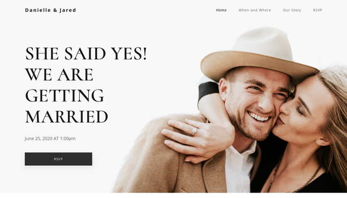 Are you planning on having a rural wedding? Then create your wedding website in the same style. This earthy template will easily guide you through the process. Share important details with your guests and ask them everything you need to know for smooth organization through a simple RSVP form.